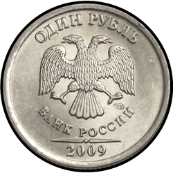 - в центре – рельефное изображение двуглавого орла, вверху над ним – надпись по окружности: "БАНК РОССИИ"; - справа внизу, под левой лапой орла – товарный знак монетного двора; - в нижней части диска, под орлом – буквенное обозначение номинала в одну строку: "ОДИН РУБЛЬ", подчеркнутое горизонтальной линией, разделенной посередине точкой; - внизу под линией – год чеканки.